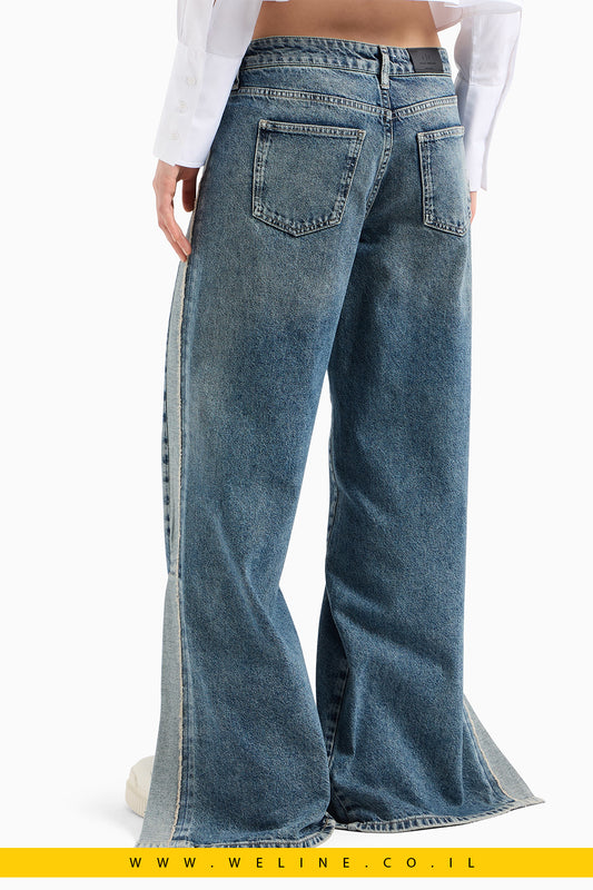 ג׳ינס נשים בגזרת Relaxed עם שסעים דקורטיביים | דגם מודרני בקונטרסט דנים