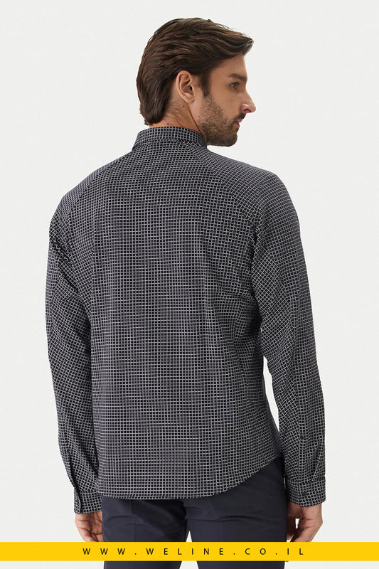 חולצת מכופתרת לגברים Tommy Hilfiger Flex Poplin Mini Print Slim Shirt – טומי הילפיגר | Slim Fit