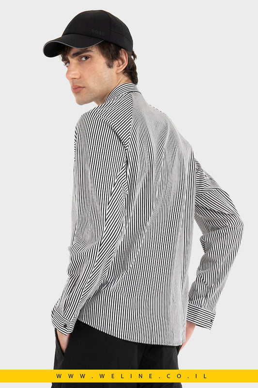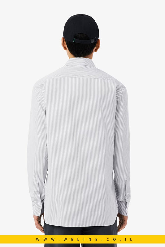 חולצת Lacoste Slim Fit Striped Stretch Poplin – צבע Blanc / Gris / Noir
