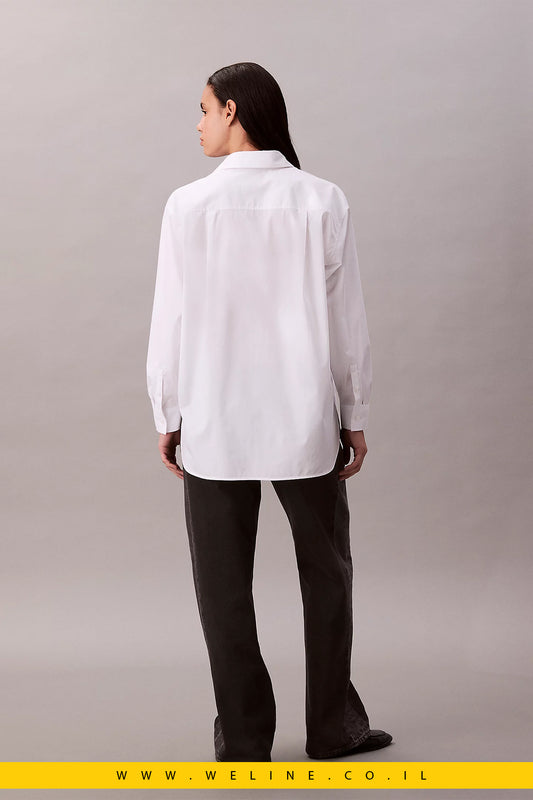 חולצת נשים Calvin Klein Poplin Relaxed – כותנה עם אלסטאן