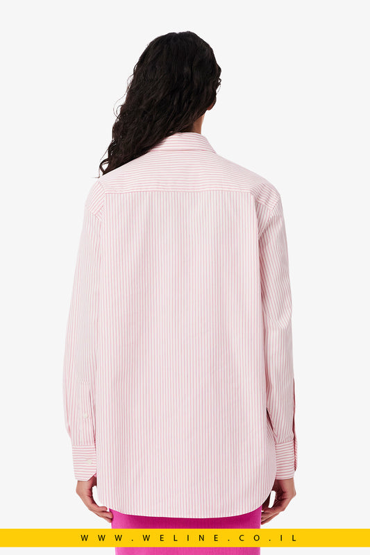 חולצת אוברסייז מכותנה פופלין לנשים – ורוד | Lacoste