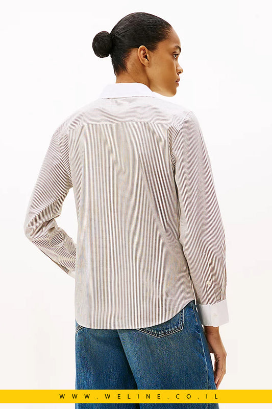 חולצת פופלין קלאסית בגזרה רגילה – פסים חום | Tommy Hilfiger