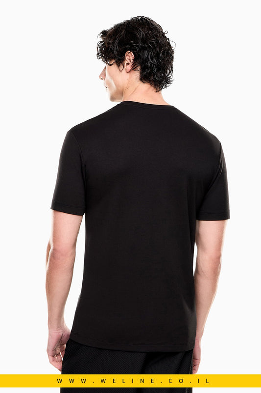 Premium Label Stretch Viscose-Blend Crew-Neck T-Shirt EA7 – צבע שחור חולצת טי איכותית בגזרת Regular Fit בעיצוב קלאסי עם צווארון עגול