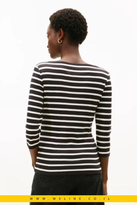 חולצת טי נשית ומחמיאה מבית Tommy Hilfiger בעיצוב פסים Black / Ecru קלאסי.