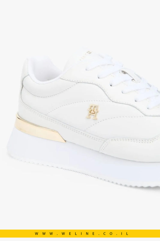 סניקרס עור לנשים Tommy Hilfiger Leather TH Monogram – צבע לבן