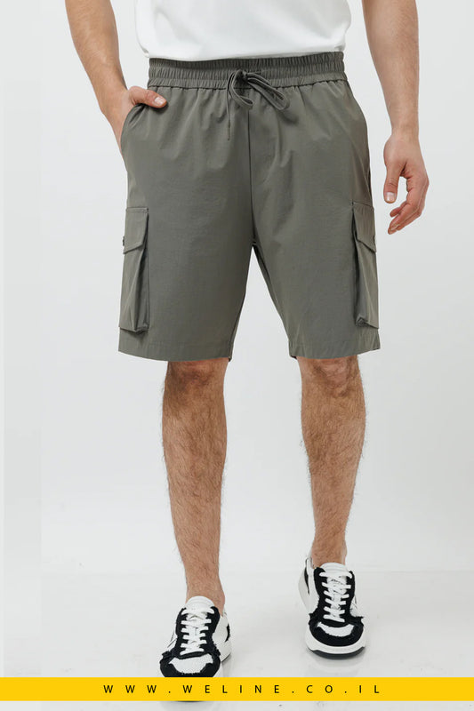 מכנסי שורט קרגו מניילון לגברים – ירוק זית