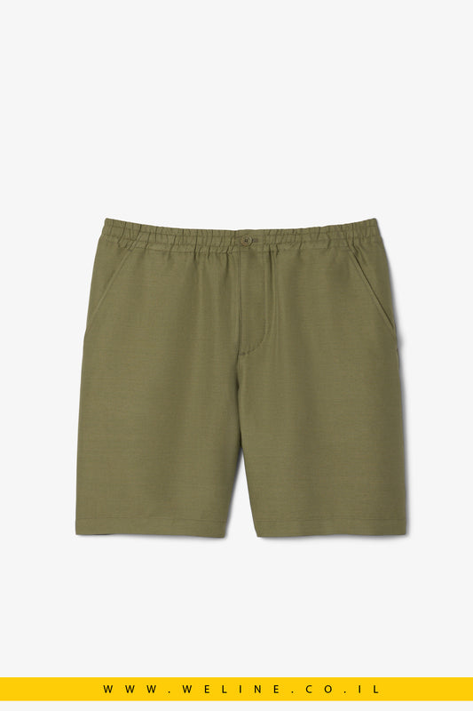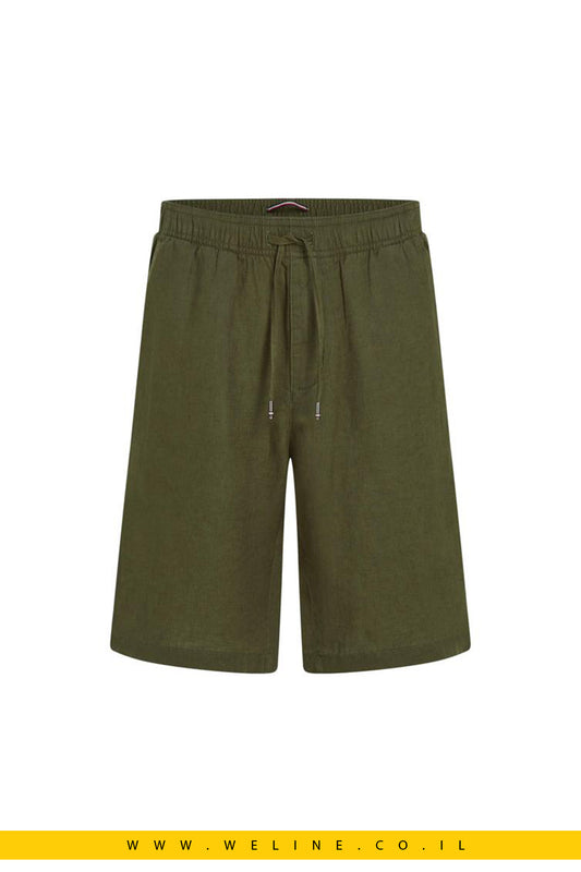 מכנסי ברמודה לגברים בגזרה רגילה מתערובת פשתן – בצבע ירוק מבית Lacoste