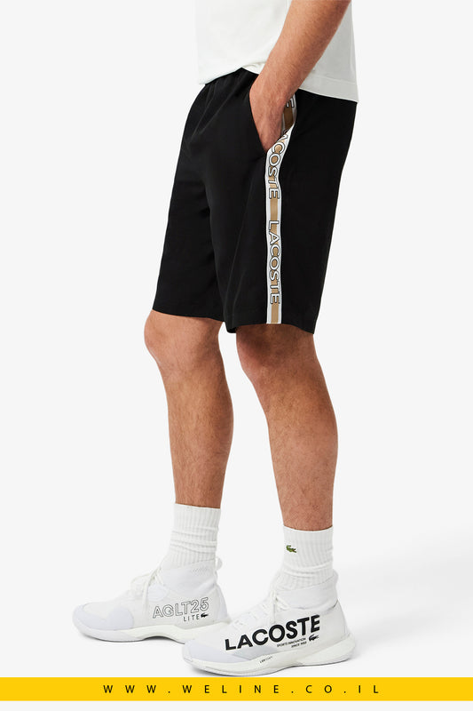 מכנסי טניס עם פסים ולוגו לגברים בצבע שחור מבית Lacoste