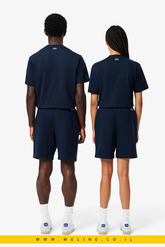 מכנסי פליס כותנה מודפסים יוניסקס בצבע כחול מבית Lacoste