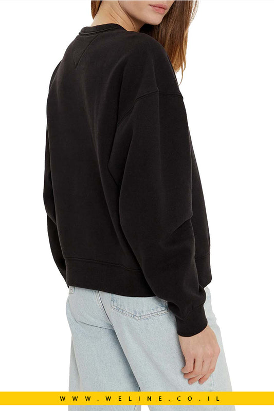 סווטשירט נשים Tommy Jeans עם לוגו מטאלי – Metallic Logo Relaxed Crew Neck Sweatshirt