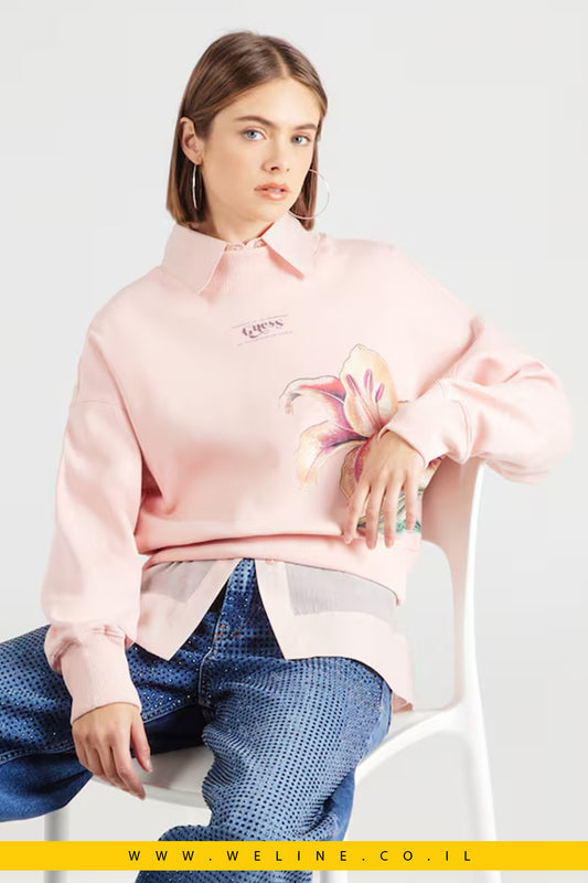 סווטשירט נשים Guess עם פרח Lilly – ורוד בהיר Loose Fit