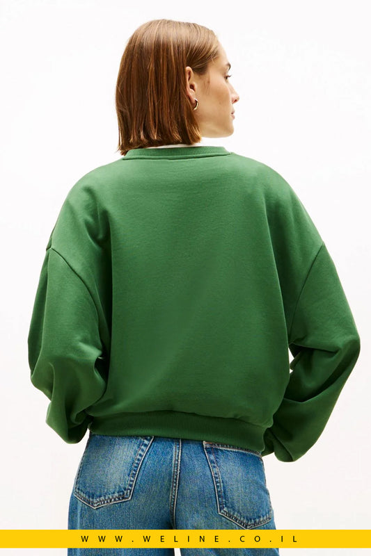 סווטשירט נשים Tommy Hilfiger – דגם Varsity Crest בצבע Deep Evergreen