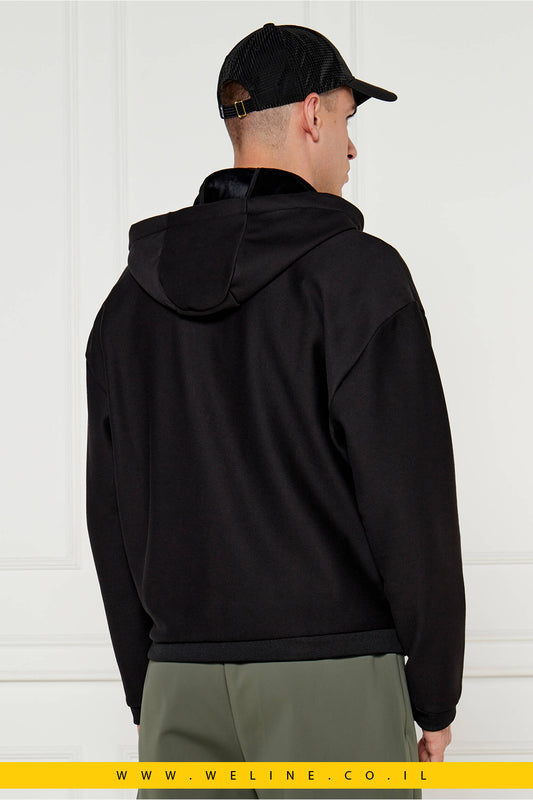 סווטשירט חורפי עם רוכסן ושילובי בד במראה עור – EA7 Emporio Armani