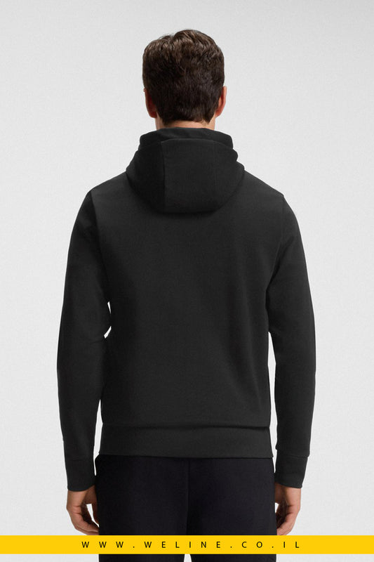 קפוצ'ון רוכסן מבד כותנה משולב עם מונוגרמת Double B – שחור | BOSS