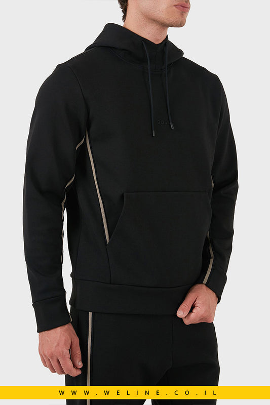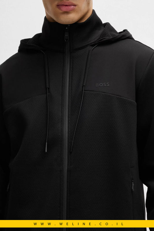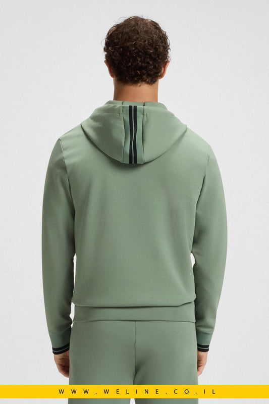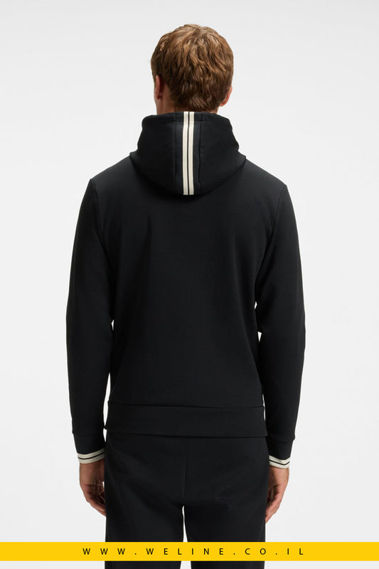 קפוצ'ון רוכסן מתערובת כותנה עם פסי עיצוב – BOSS