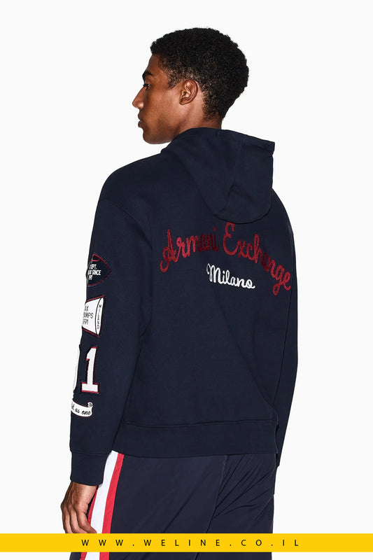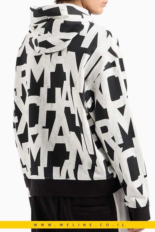 קפוצ'ון ספורטיבי מודפס לגברים Armani Exchange – עיצוב Oversized עם כתפיים שמוטות