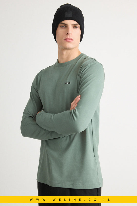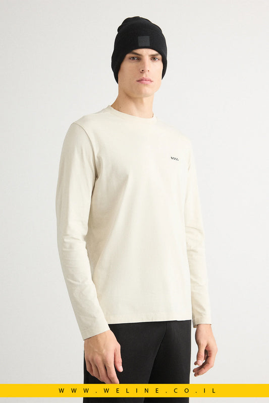 טי־שירט שרוול ארוך מכותנה סטרצ’ עם לוגו קונטרסטי לגברים מבית BOSS