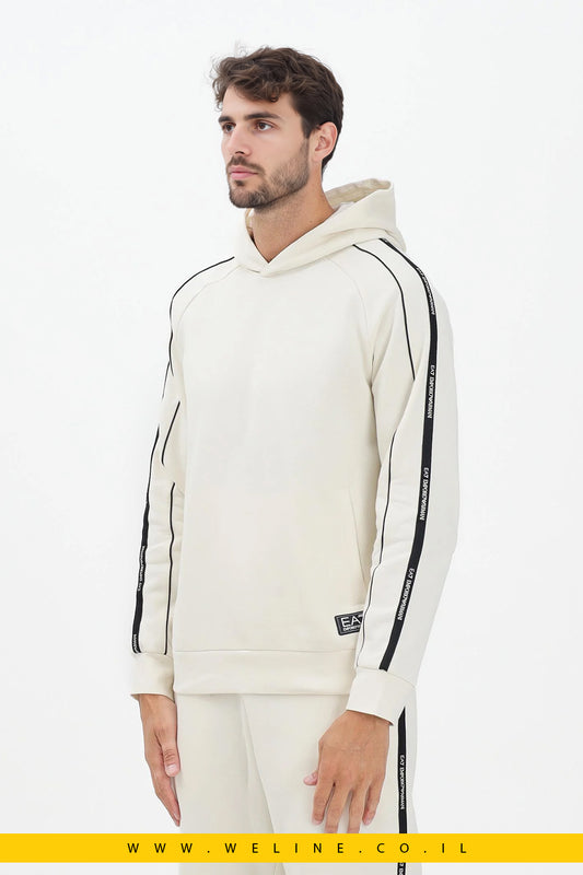 קפוצ'ון גברים EA7 Logo Series – צבע קרם, גזרת Regular