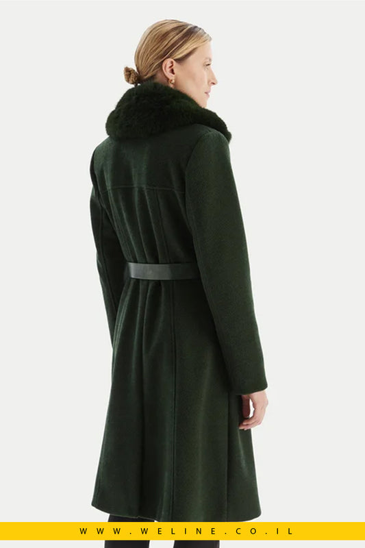 מעיל מידי דו־שכבתי עם חגורה ושיער סינתטי – Wool-Blend Belted Coat ירוק