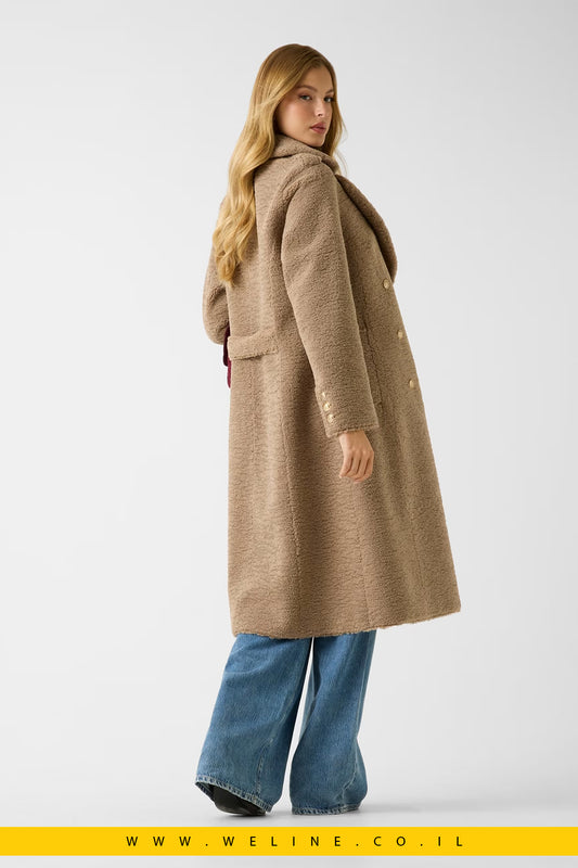 מעיל מידי דו־שכבתי עם חגורה ושיער סינתטי – Wool-Blend Belted Coat (חום בהיר)