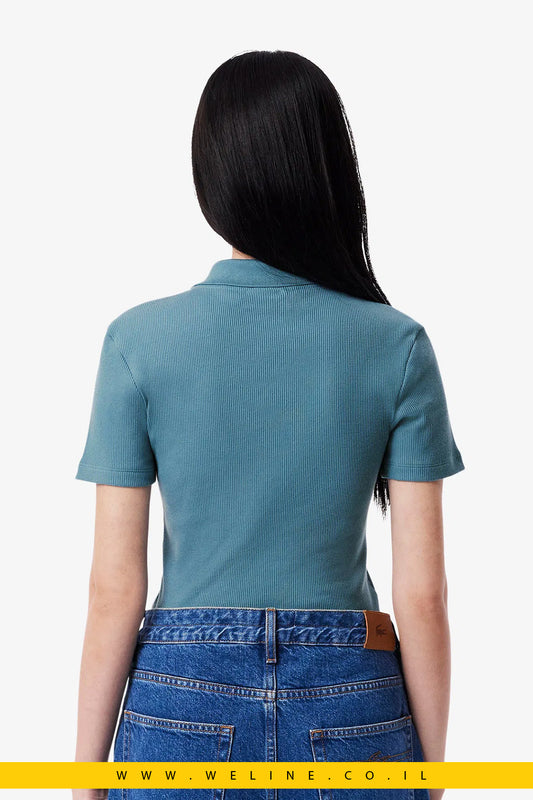 חולצת טי לנשים עם מונוגרמה סרוגה – גזרת Slim | Lacoste