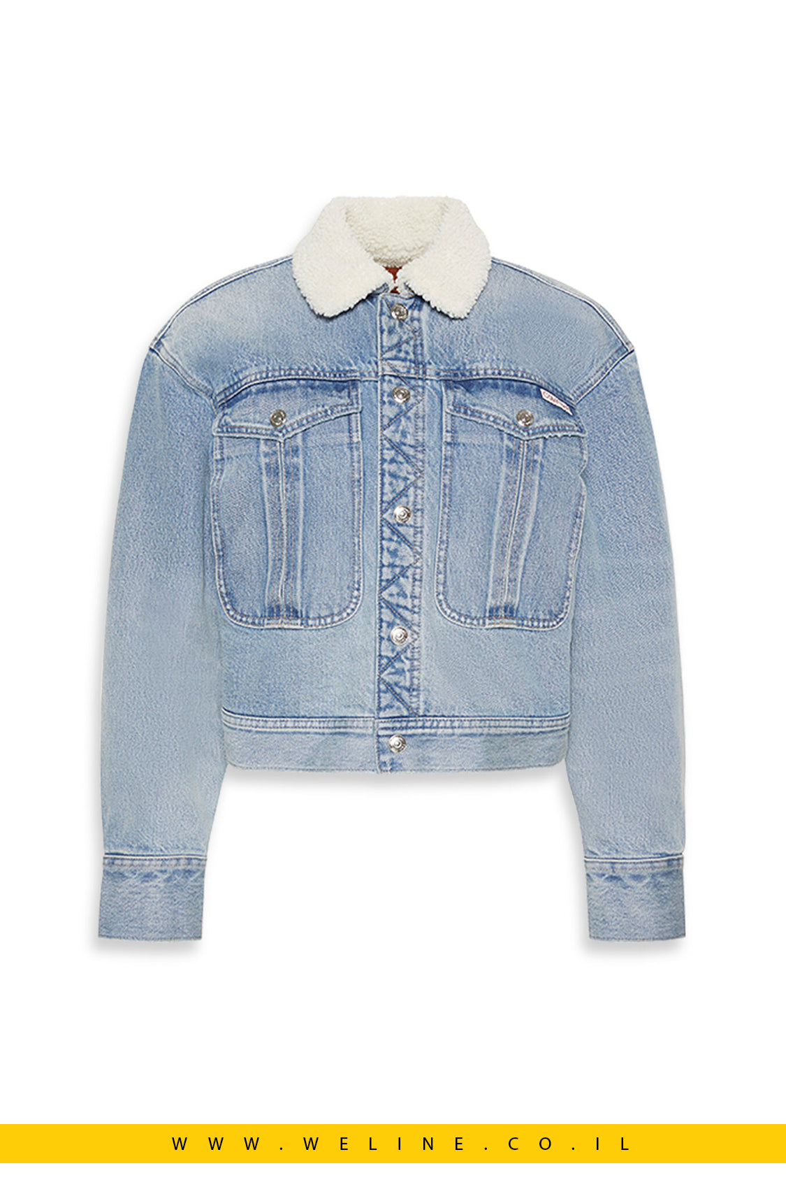 ג'קט ג'ינס Calvin Klein נשים, ג'קט וינטג' קרופ CK, ג'קט ג'ינס עם פרווה נשים, ג'קט אופנתי שנות ה־90, Calvin Klein Denim Jacket