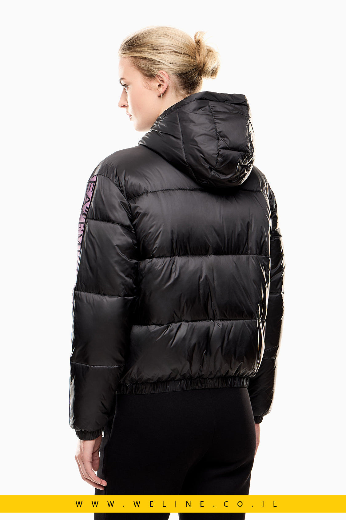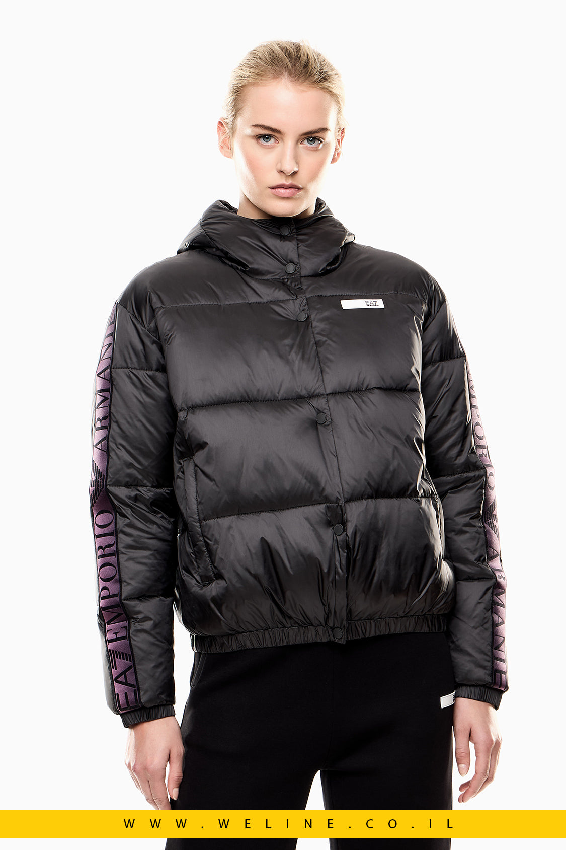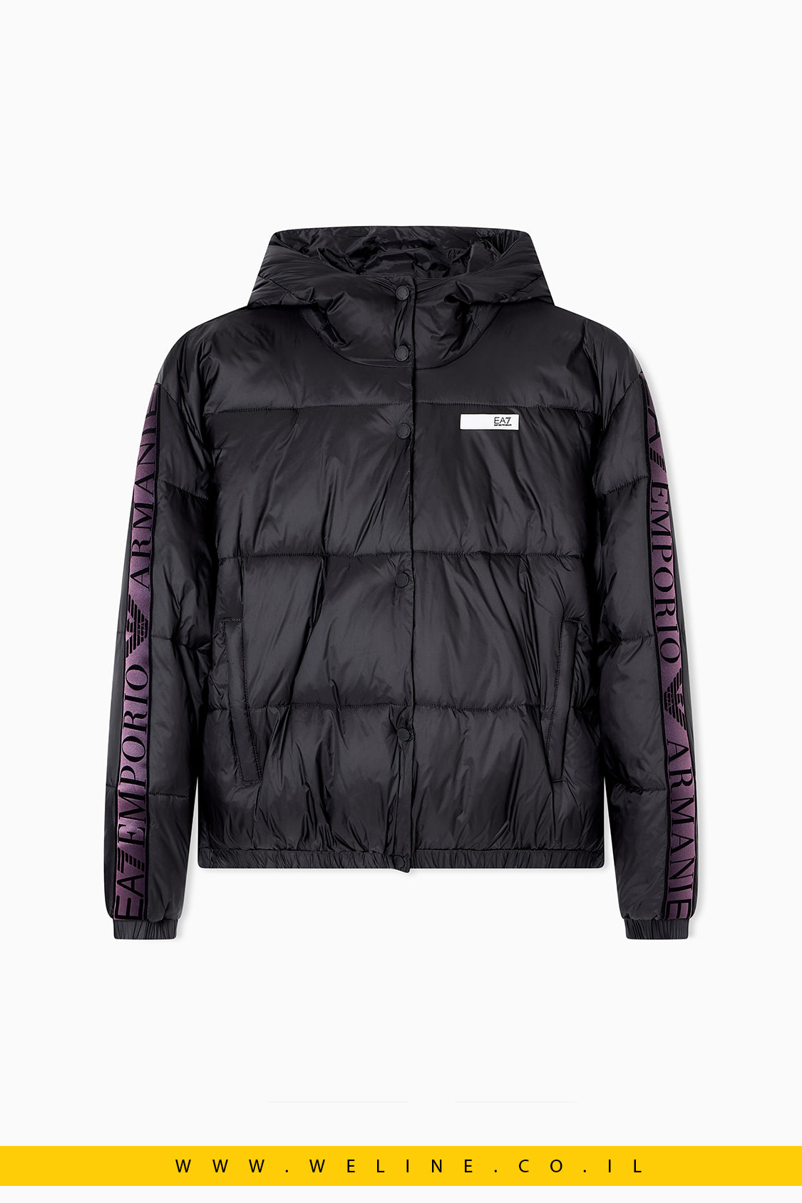 ג'קט קפוצ'ון טכני ומתקדם מבית EA7, המשלב עיצוב ספורטיבי עם נוחות יומיומית.