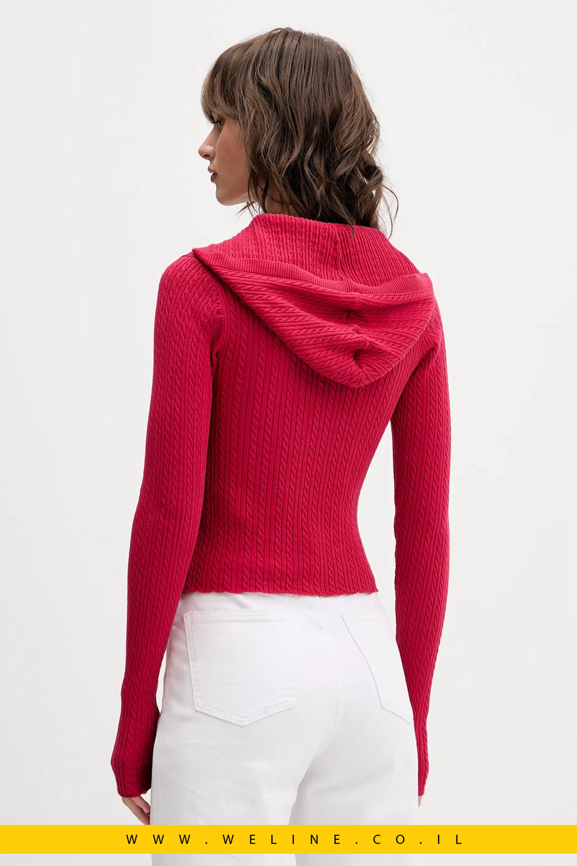 Tommy Jeans women hoodie, ג’אמפר נשים בורדו, סריג נשים Tommy, קפוצ’ון לנשים, ג’אמפר Slim Fit, סריג דק לנשים, חולצת חורף Tommy Jeans, סריג אופנתי לנשים