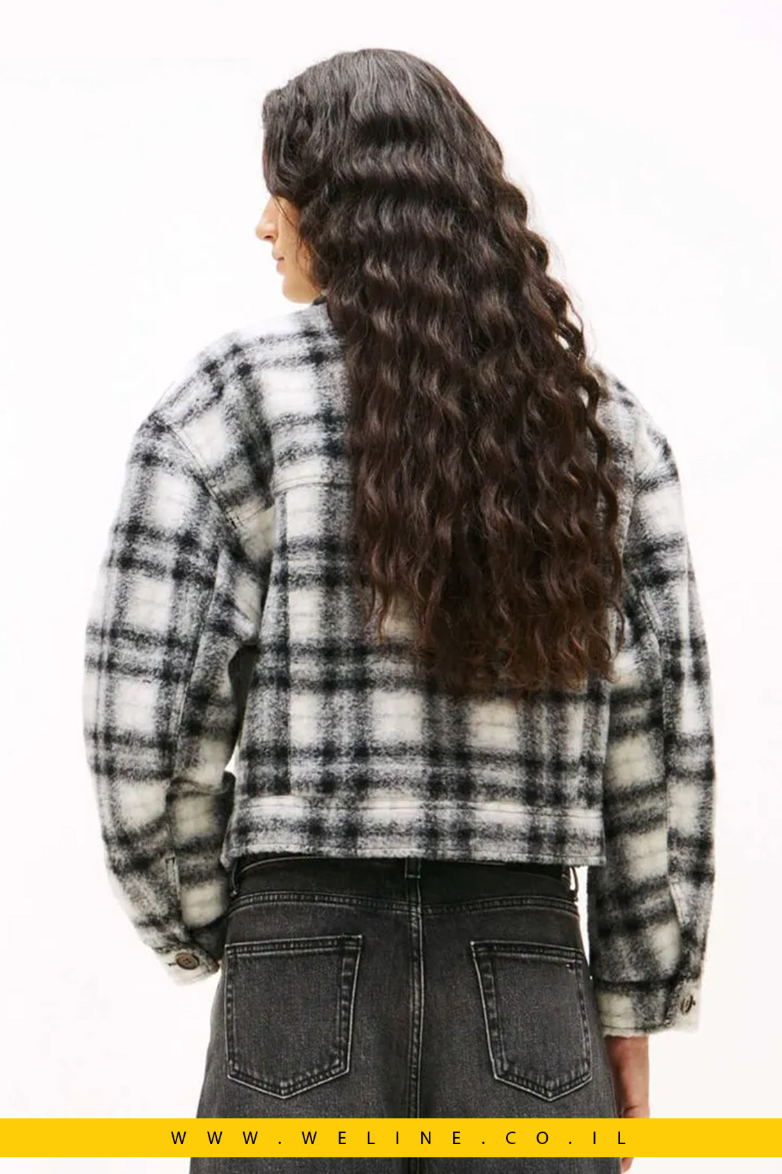 ג׳קט טרקר לנשים Tommy Jeans מצמר משולב שחור לבן עם לוגו – משבצות שחור