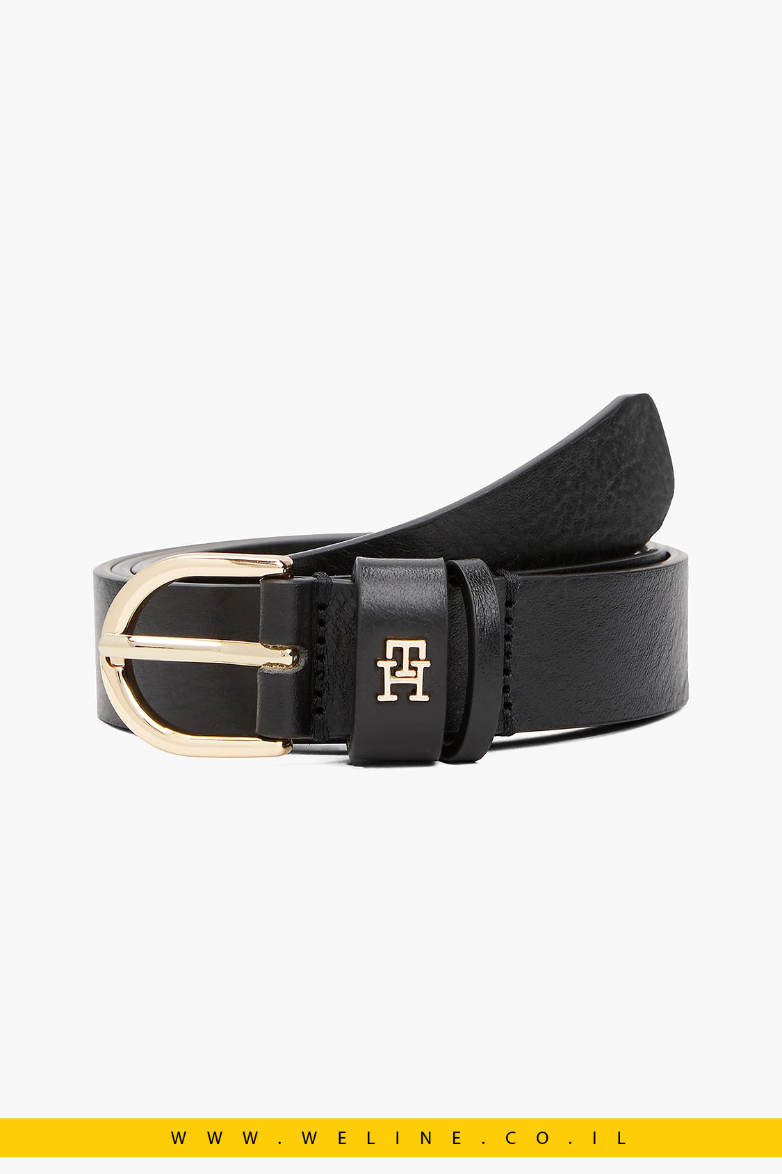 חגורת טומי הילפיגר, Tommy Hilfiger belt, חגורת עור לנשים, חגורה שחור קלאסי, TH Monogram belt, חגורה אלגנטית יומיומית, חגורה דקה 2.5 ס"מ, חגורה עם אבזם מתכתי, חגורת עור איכותית, AW0AW16836BDS