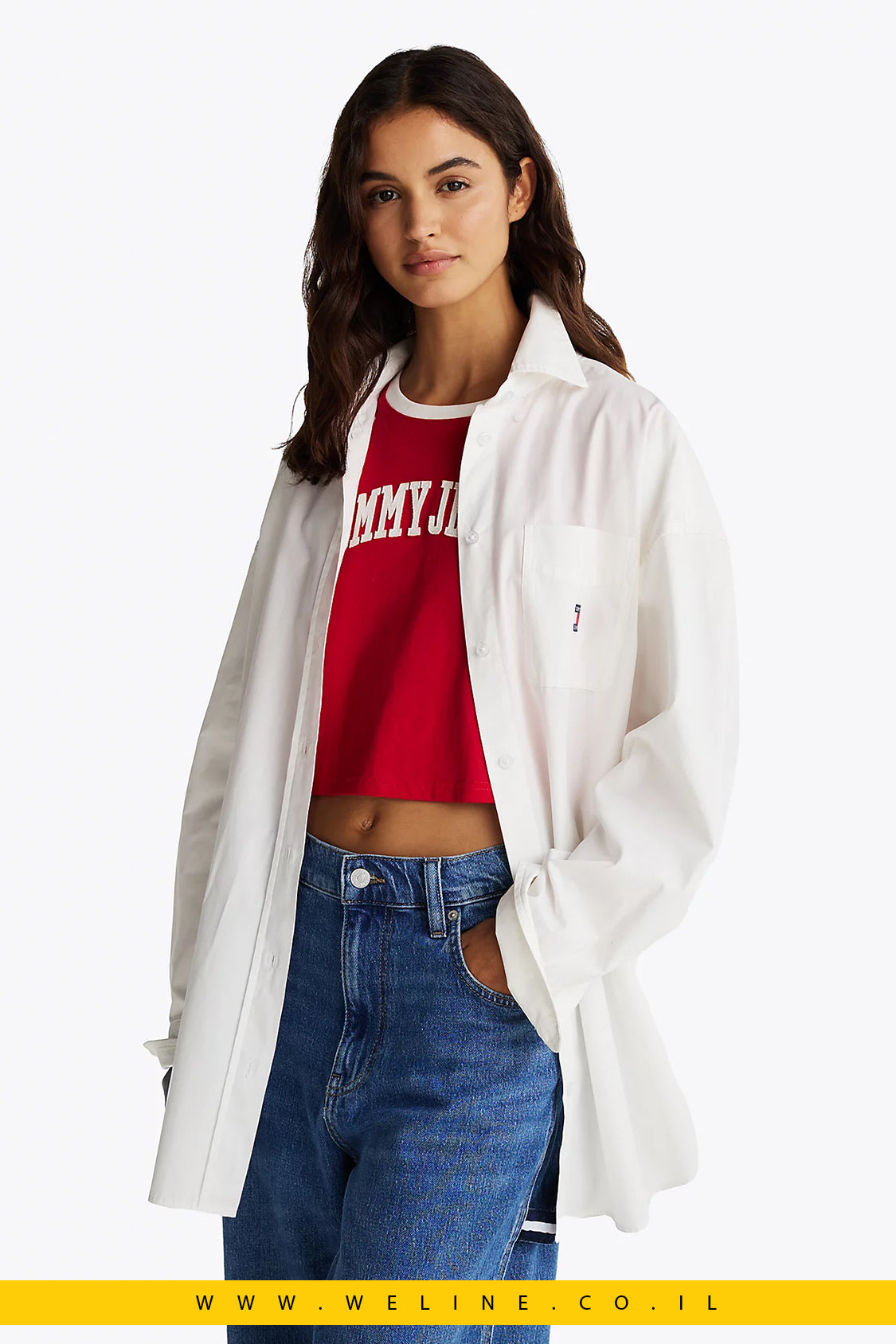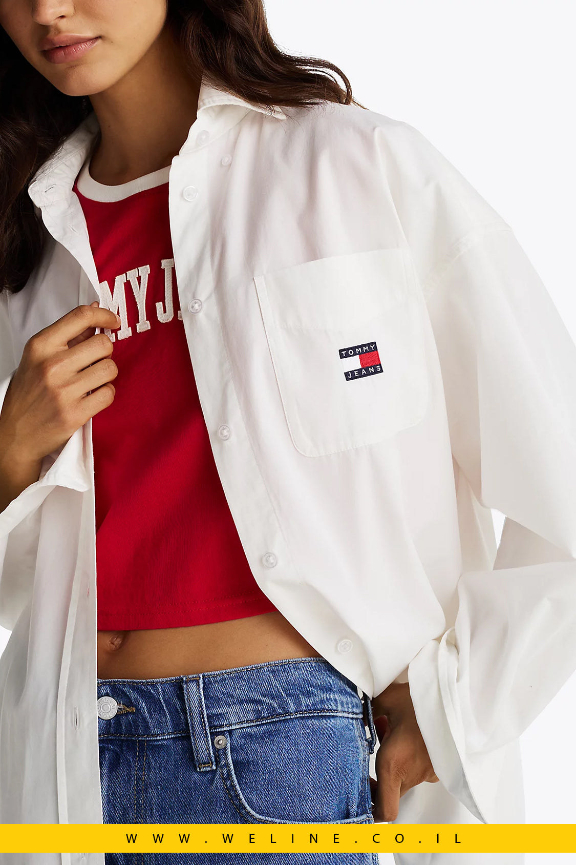 • פרטים נוספים: כתפיים שמוטות, לוגו רקום בחזית, דגל Tommy Jeans על השרוול