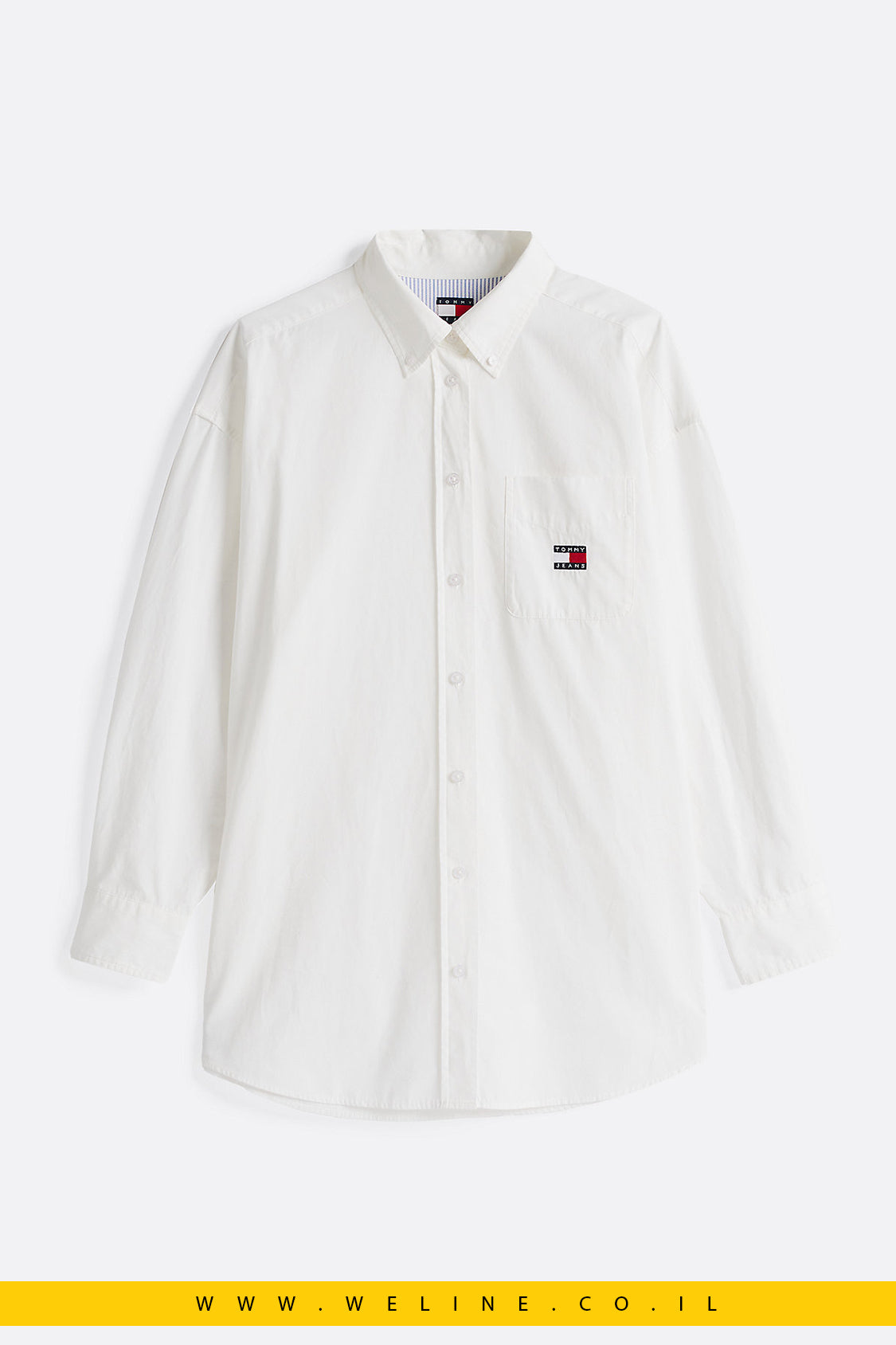 חולצת כפתורים לנשים מבית Tommy Jeans, עשויה 100% כותנת אוקספורד איכותית. עיצוב קלאסי בעיטור פסים אנכיים עם גזרה רחבה ומשוחררת, צווארון קונטרסטי עם כפתורים, וכיס חזה קדמי. לוגו רקום של Tommy Jeans להשלמת הלוק הקז'ואלי-אלגנטי.