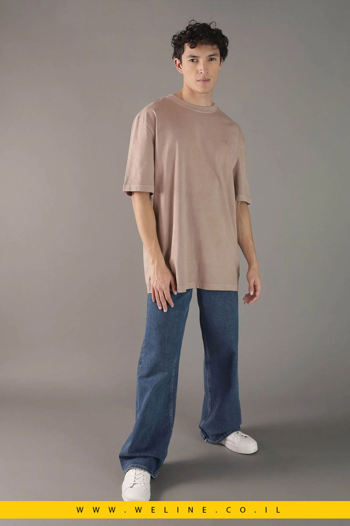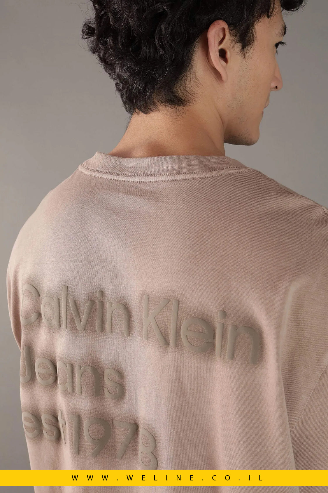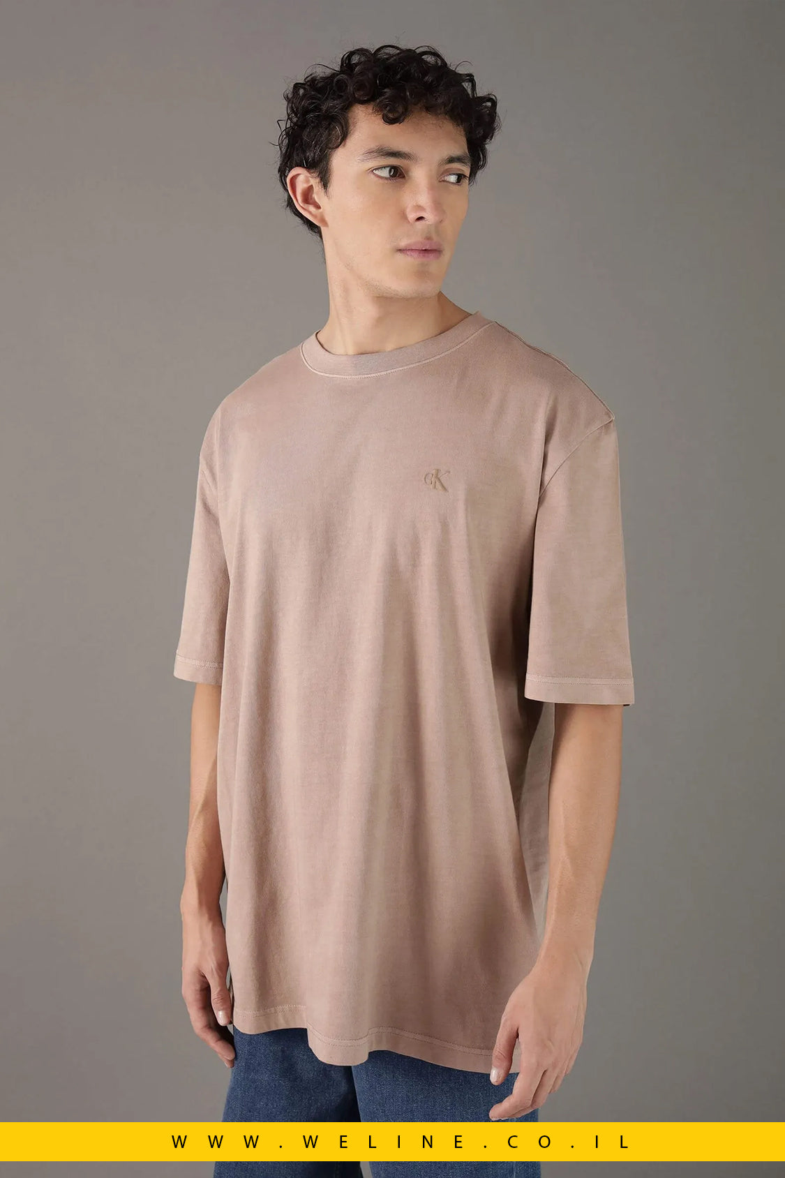 חולצת טי לגברים בצבע חום עם מונוגרמה – Calvin Klein