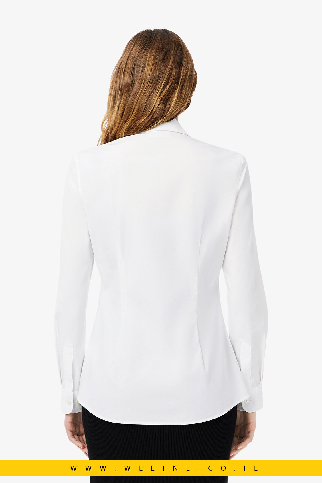 חולצת נשים Lacoste • חולצת כותנה סטרץ’ • חולצת Slim Fit לנשים • חולצה אלגנטית לבנה • Lacoste Poplin Shirt • חולצה עם כיס חזה • חולצה קלאסית לנשים