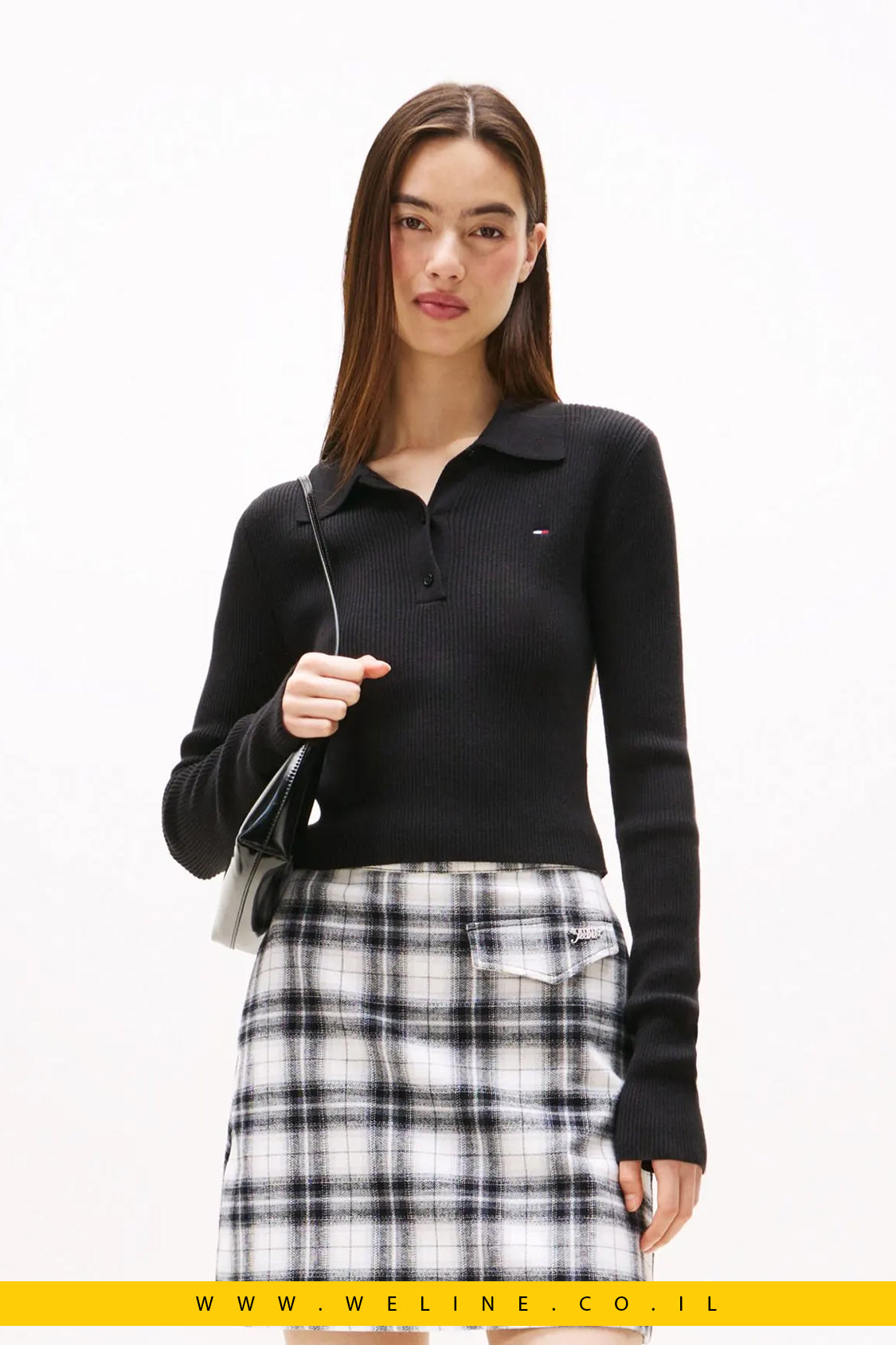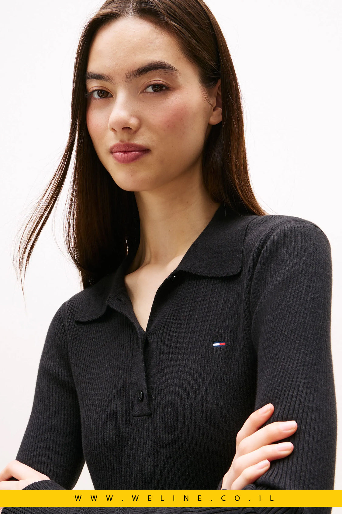 Tommy Jeans נשים, חולצת פולו לנשים, חולצת פולו כותנה, חולצת פולו ריב, חולצת Tommy אלגנטית, סגנון אמריקאי קלאסי
