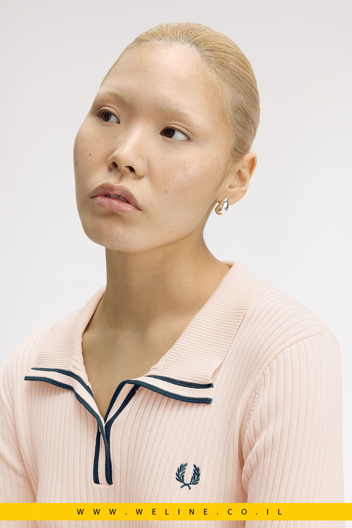Fred Perry Polo, חולצת פולו סרוגה, Fred Perry Israel, חולצת ריב לנשים, Sustainable Fashion, Fred Perry Silky Peach, חולצת פולו ממוחזרת
