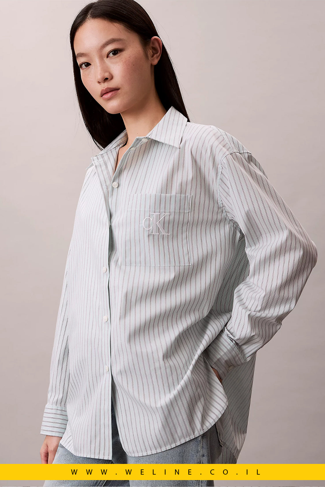 חולצת פופלין מפוספסת מכותנה – Calvin Klein