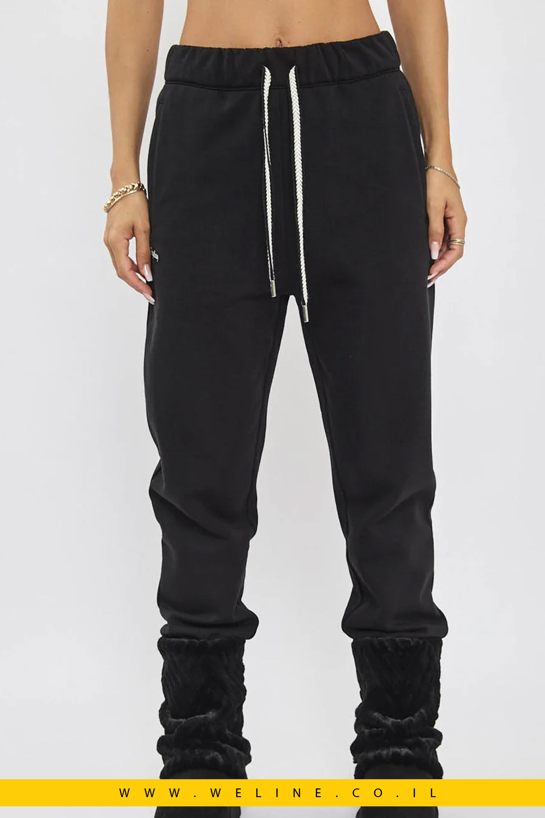 מכנסי טרנינג לנשים בצבע שחור עם לוגו רקום