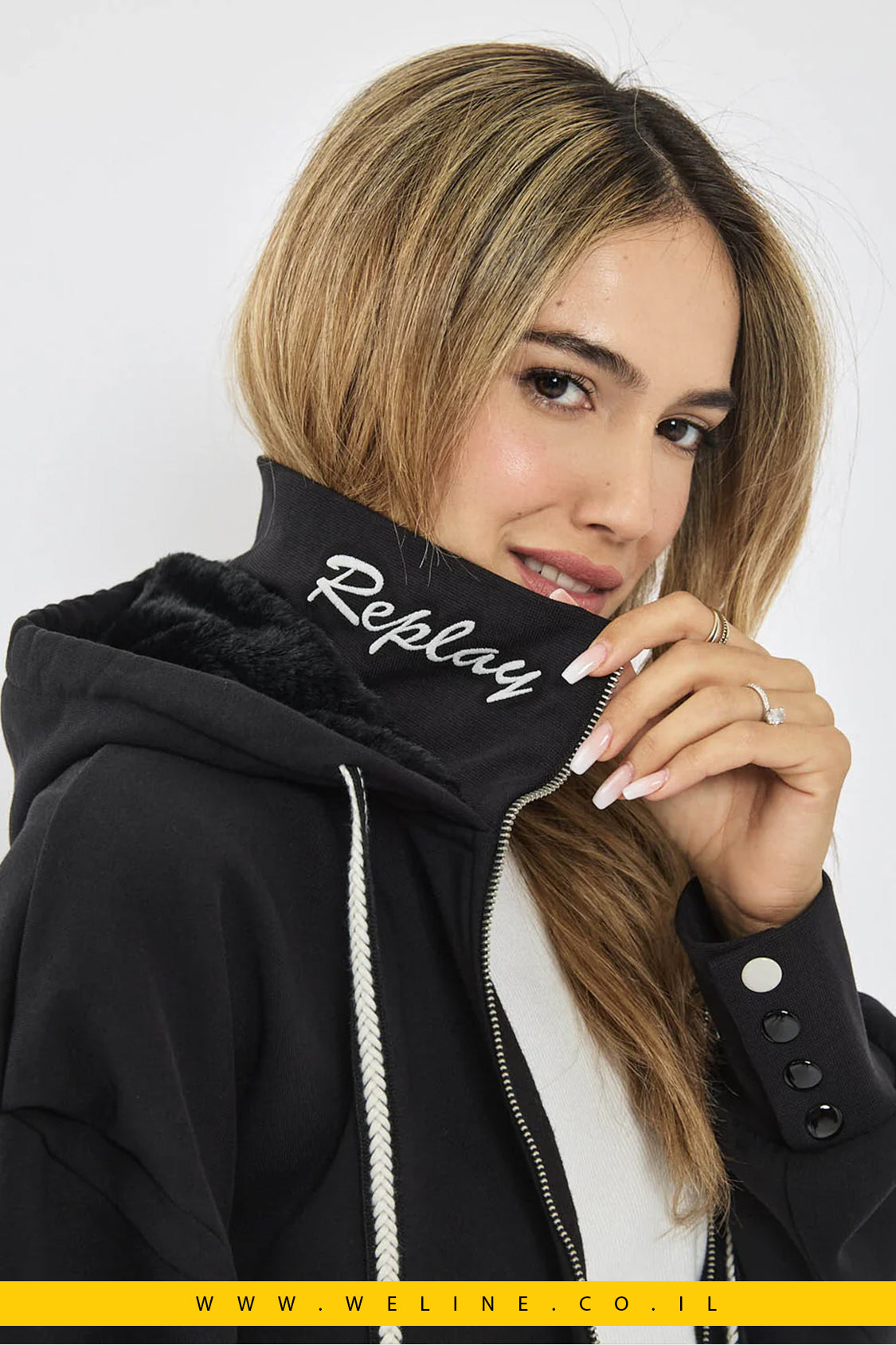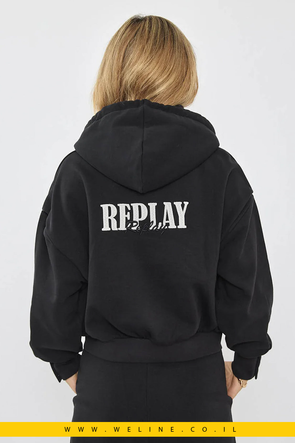 קפוצ'ון לנשים בגזרת אוברסייז עם רוכסן מלא בחזית בצבע שחור קלאסי. עשוי מבד CVC איכותי (כותנה ופוליאסטר) למגע רך ונעים. כולל קפוצ'ון עם שרוך מתכוונן, כיסים נוחים וצורת גימור ריב בקצוות לסטייל נקי. בגב מופיע לוגו רקום של REPLAY המוסיף טאץ' בולט ויוקרתי. מושלם לשילוב עם ג’וגרים תואמים או ג’ינס למראה יומיומי אופנתי.