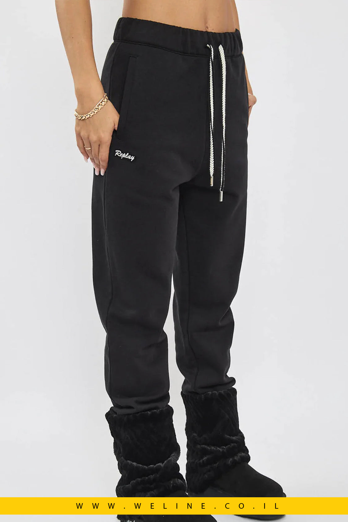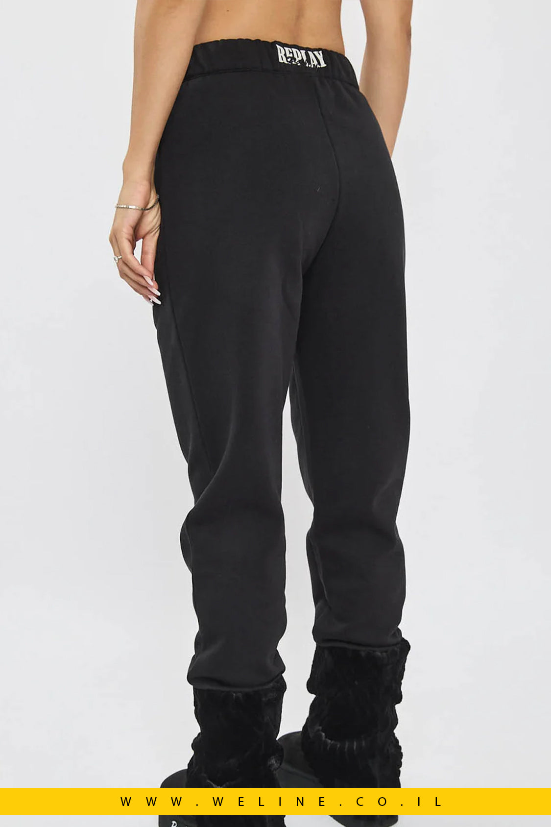 מכנסי טרנינג לנשים בגזרה נוחה ומחמיאה בצבע שחור קלאסי. עשויים מבד CVC איכותי (תערובת כותנה ופוליאסטר) למגע רך ונעים לאורך כל היום. כוללים גומי במותן עם שרוך מתכוונן, כיסים צדדיים וסיומי ריב בקרסוליים למראה מדויק ונוח. לוגו רקום של REPLAY מופיע בגב להשלמת הסטייל. מושלם לשילוב עם קפוצ’ון תואם או טופ בסיסי למראה יומיומי ואופנתי.