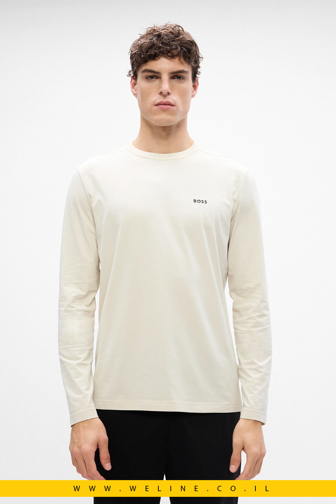 טי־שירט שרוול ארוך מכותנה סטרצ’ עם לוגו קונטרסטי לגברים מבית BOSS