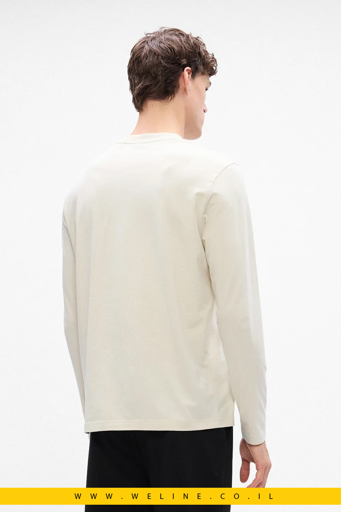 טי־שירט שרוול ארוך לגברים בגזרה ישרה וקלאסית, אידיאלית ללבישה כשכבה בפני עצמה או כחלק ממראה שכבות.