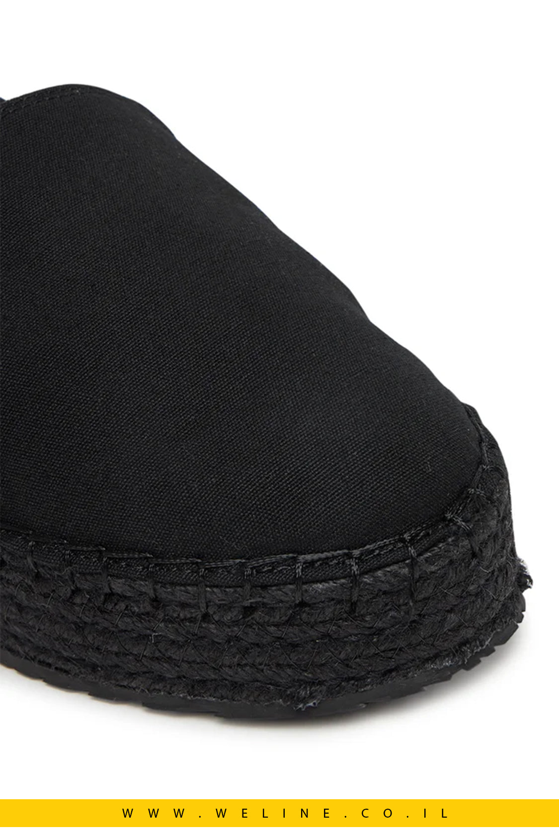 כפכפי אספדריל בעיצוב מודרני בגוון שחור חלק (Triple Black), עם סוליית פלטפורמה שטוחה להוספת גובה מבלי לוותר על נוחות. שילוב בין מראה קז'ואלי לקווים אלגנטיים, אידיאלי לשימוש יומיומי בקיץ.