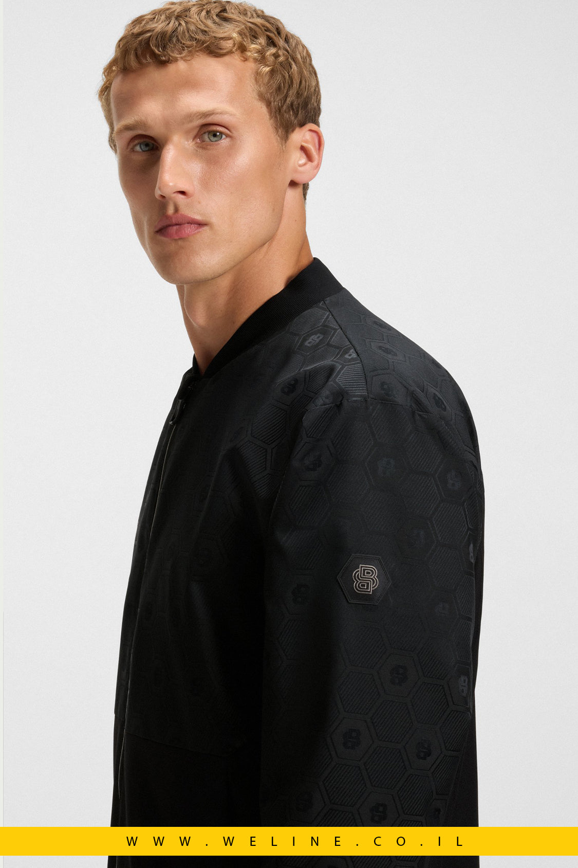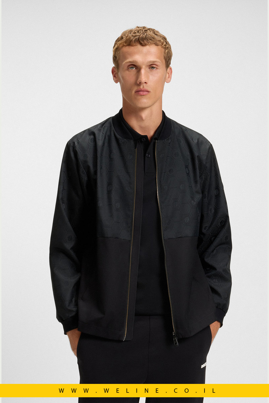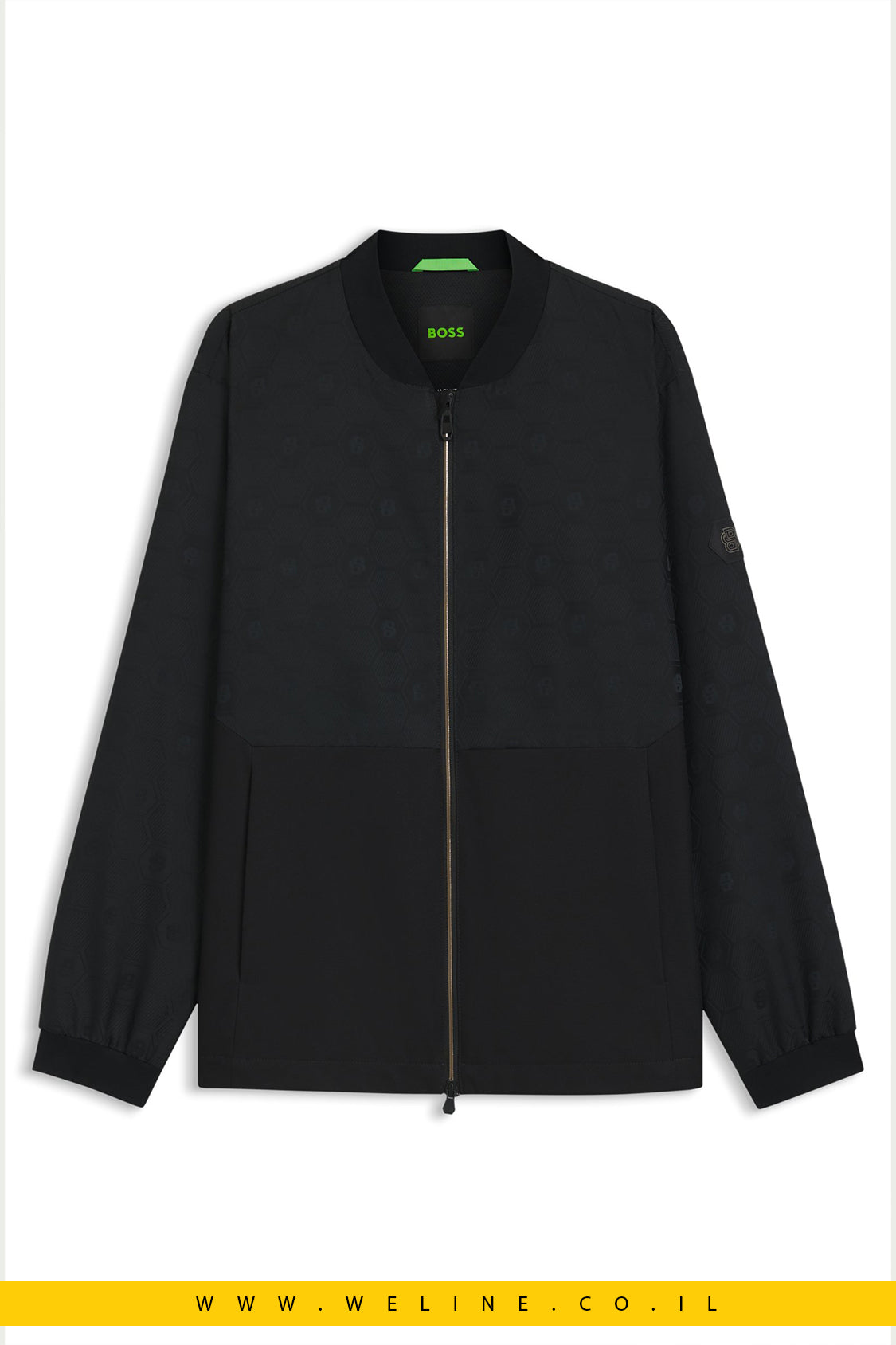 BOSS J_Future Bomber • מעיל דוחה מים לגברים • Double B Monogram Jacket • מעיל מעבר BOSS • מעיל בומבר יוקרתי לגברים