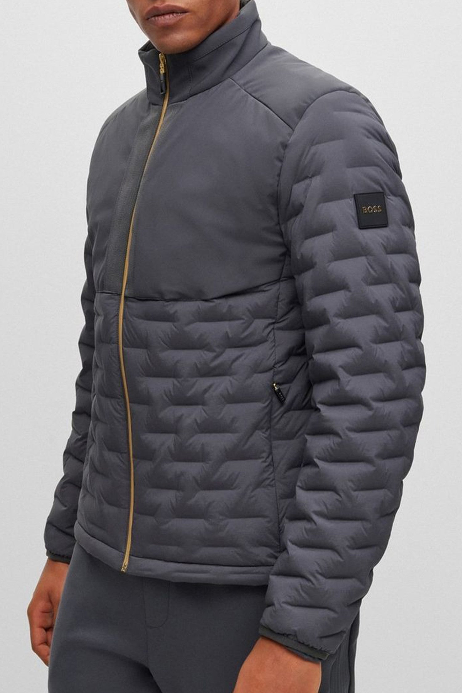 מעיל חורף מרופד של Hugo Boss Green בצבע אפור רגיל עם רוכסן קליל
