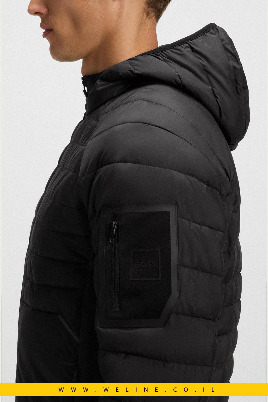 מעיל קפוצ'ון דוחה מים עם פרטי רפלקטור – BOSS Urbanex
