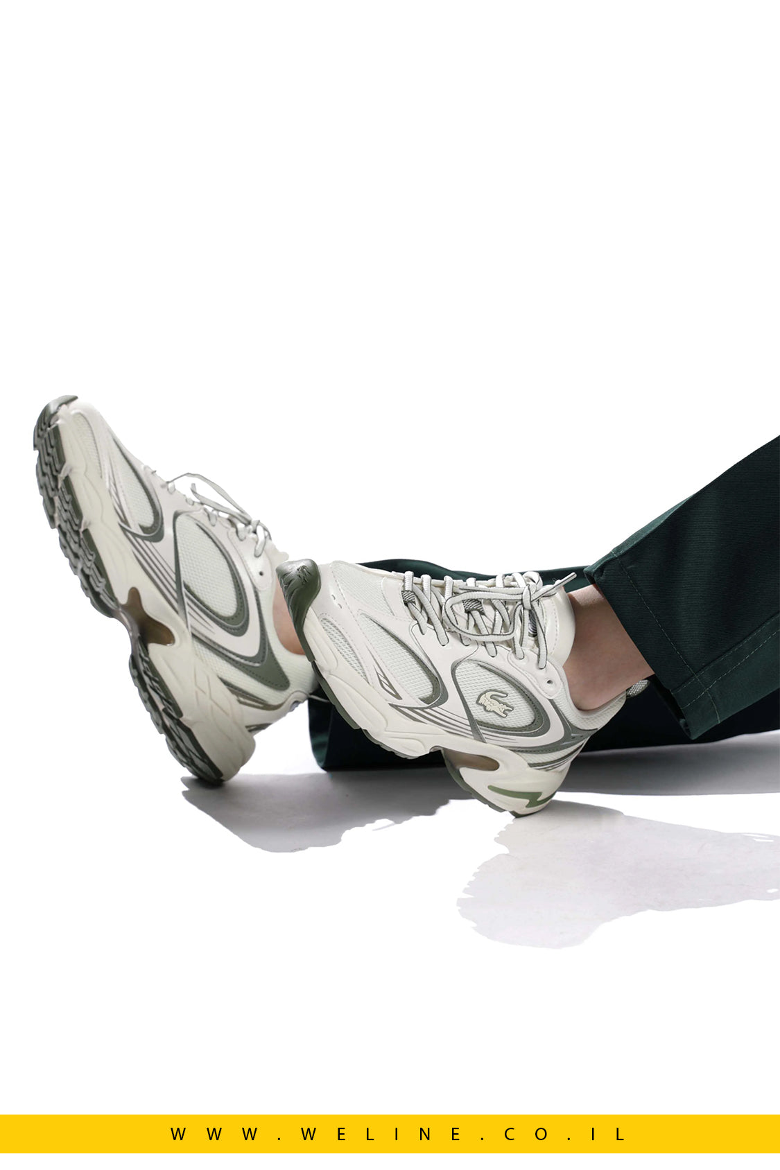 סניקרס Lacoste Storm 96 נשים, נעלי ריצה אופנתיות Lacoste, נעלי ספורט נשים בצבע Off White Khaki, נעלי רטרו Lacoste לנשים, Storm 96 2K Sneakers