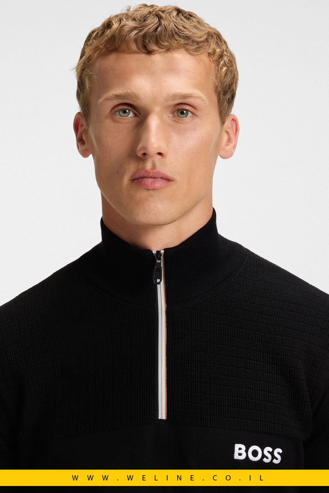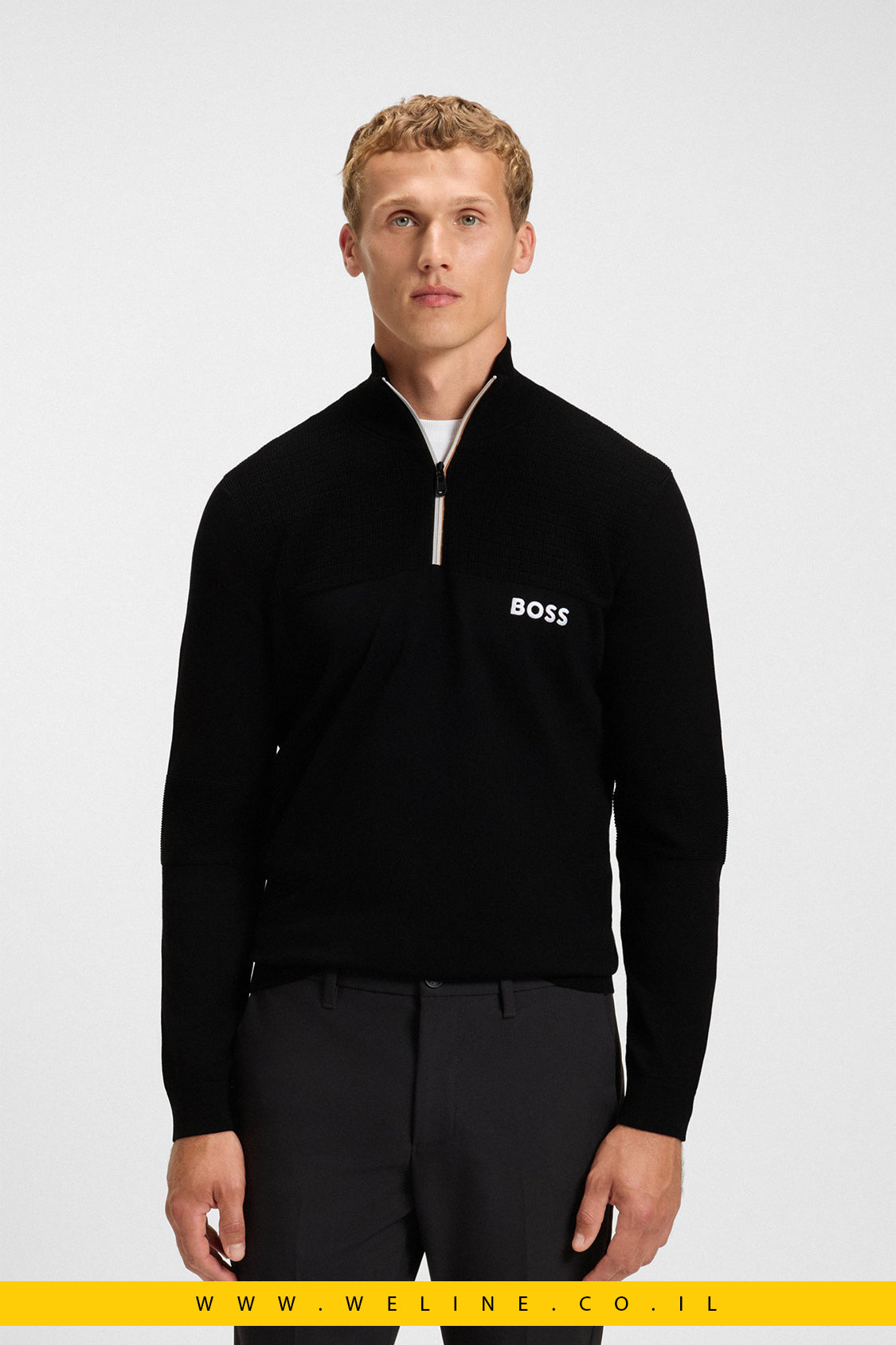 BOSS גברים, סוודר גולף, סוודר עם רוכסן, סוודר עמיד למים, סוודר כותנה, בגדי יוקרה לגברים, Hugo Boss Israel