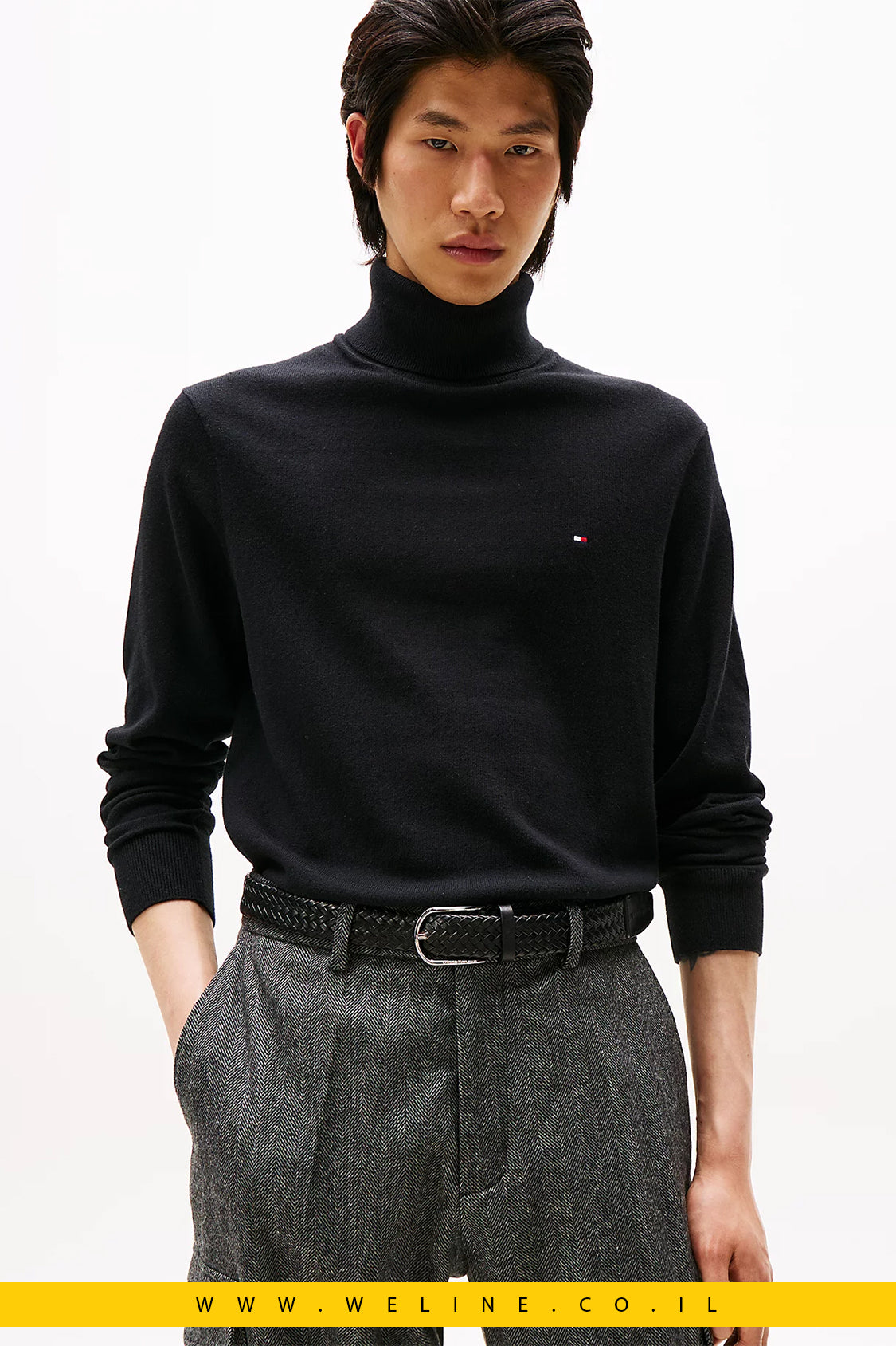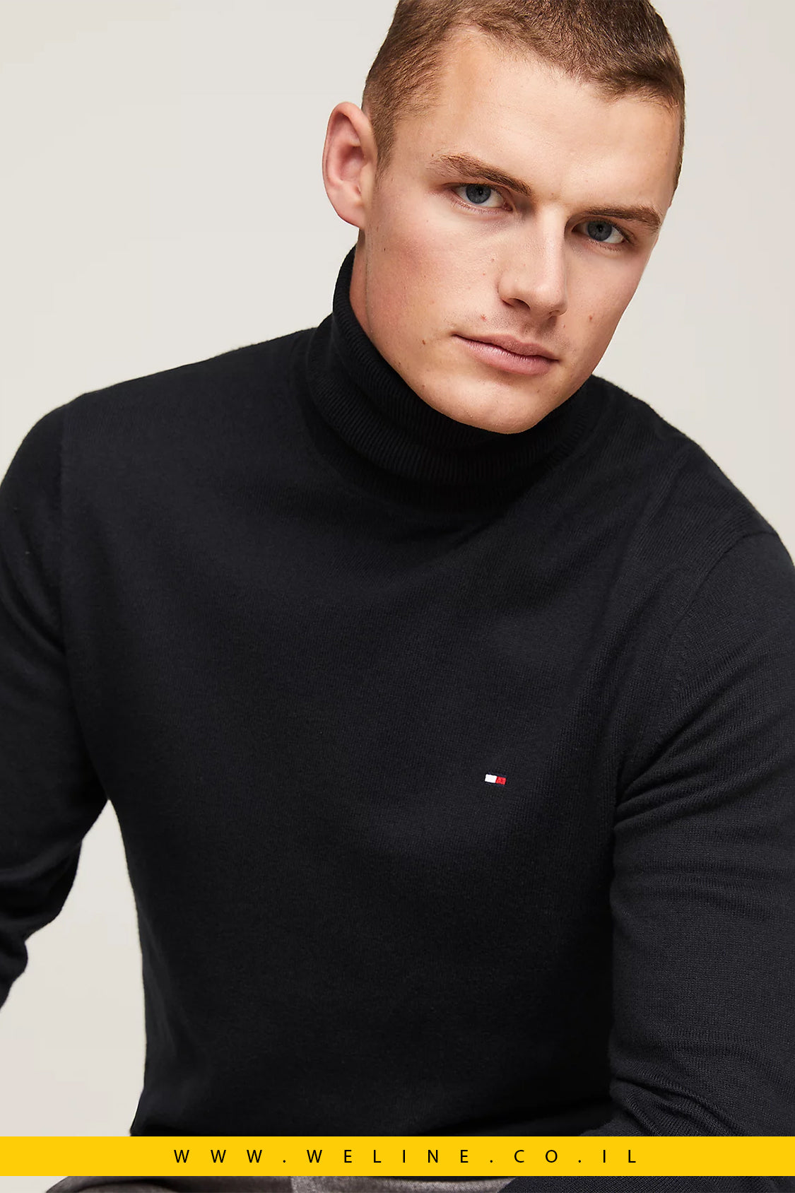 Tommy Hilfiger סוודר גולף גברים, סוודר קשמיר לגבר, סוודר יוקרתי לגברים, סוודר חורף Tommy Hilfiger, סוודר פימה קשמיר