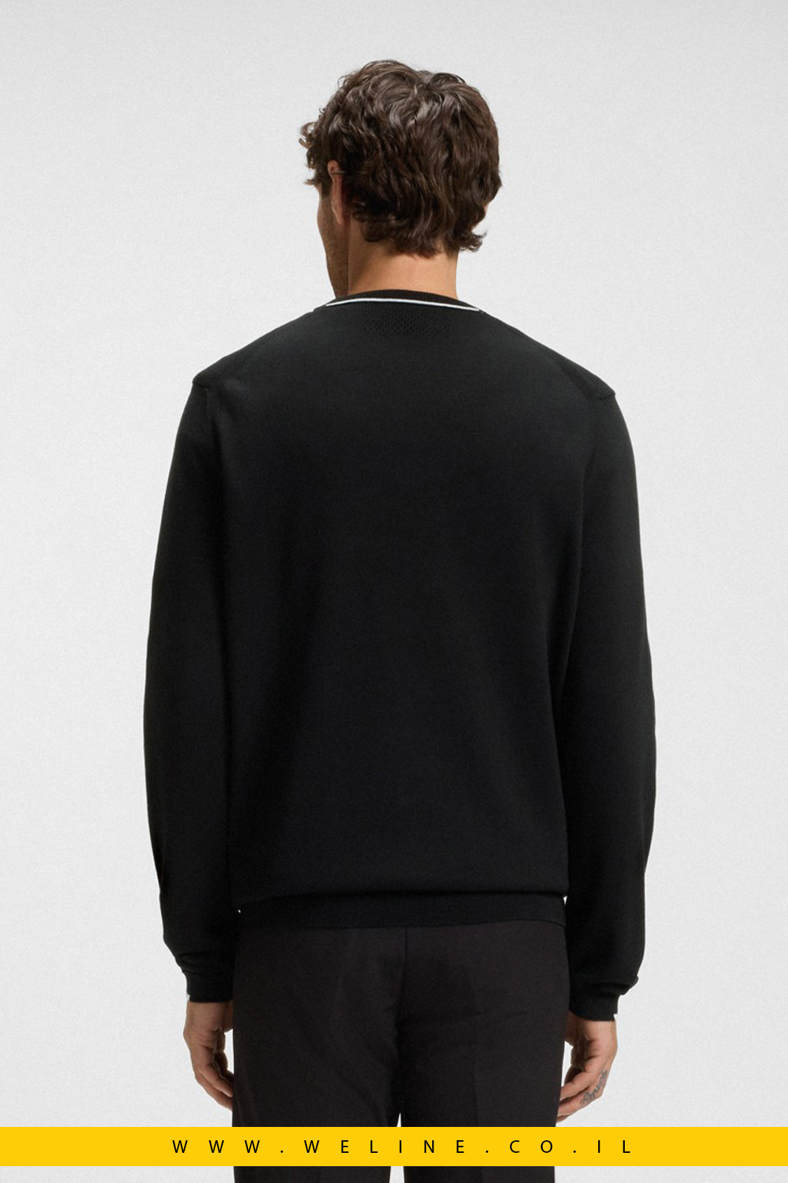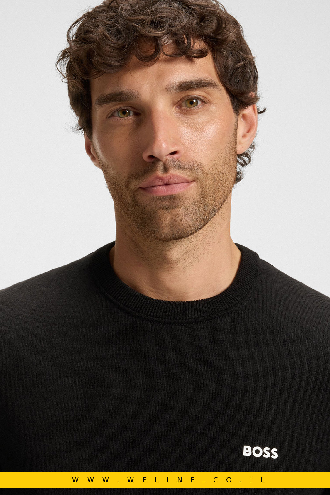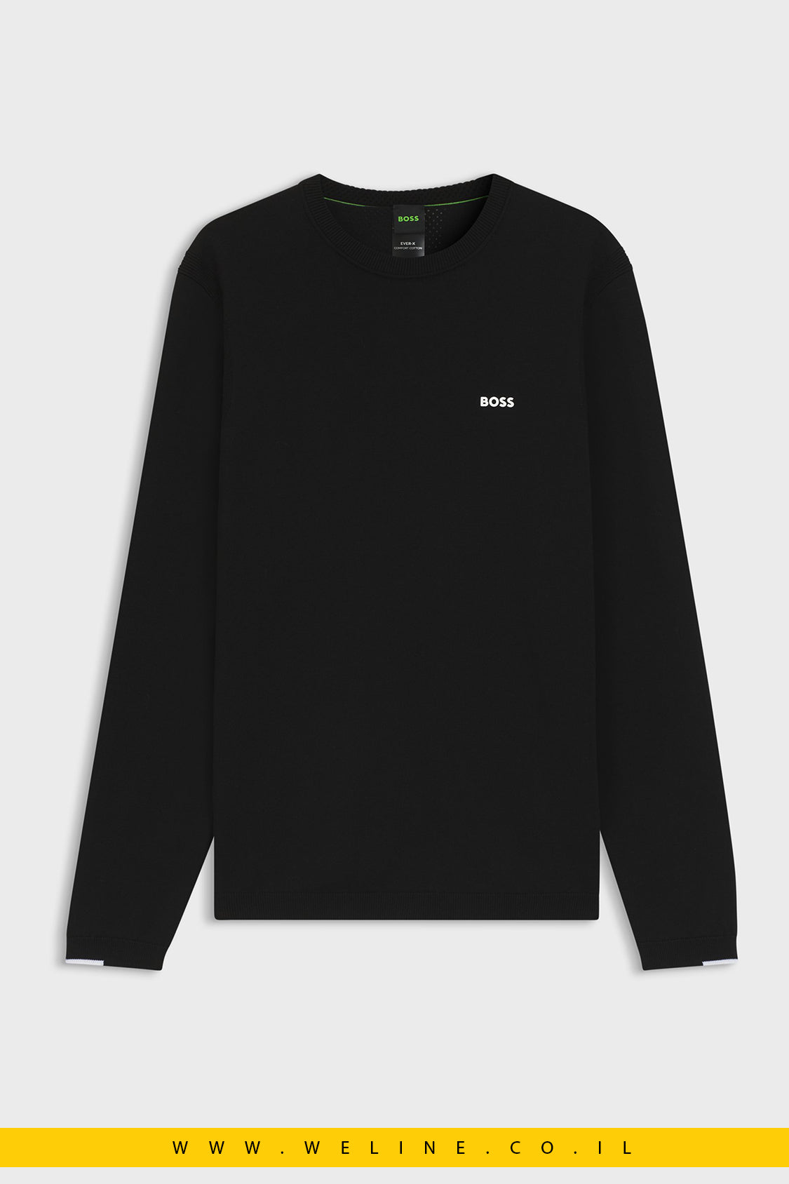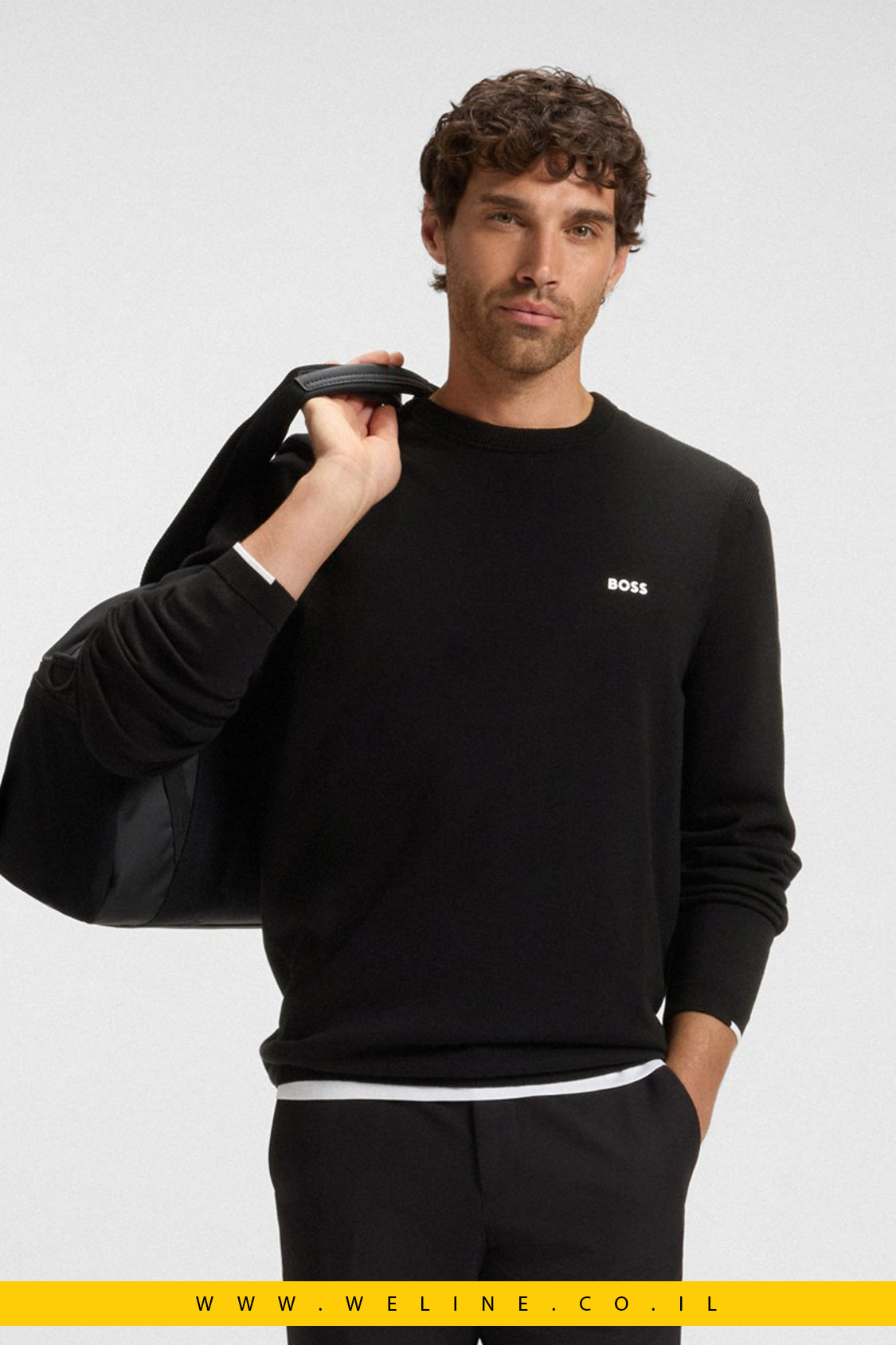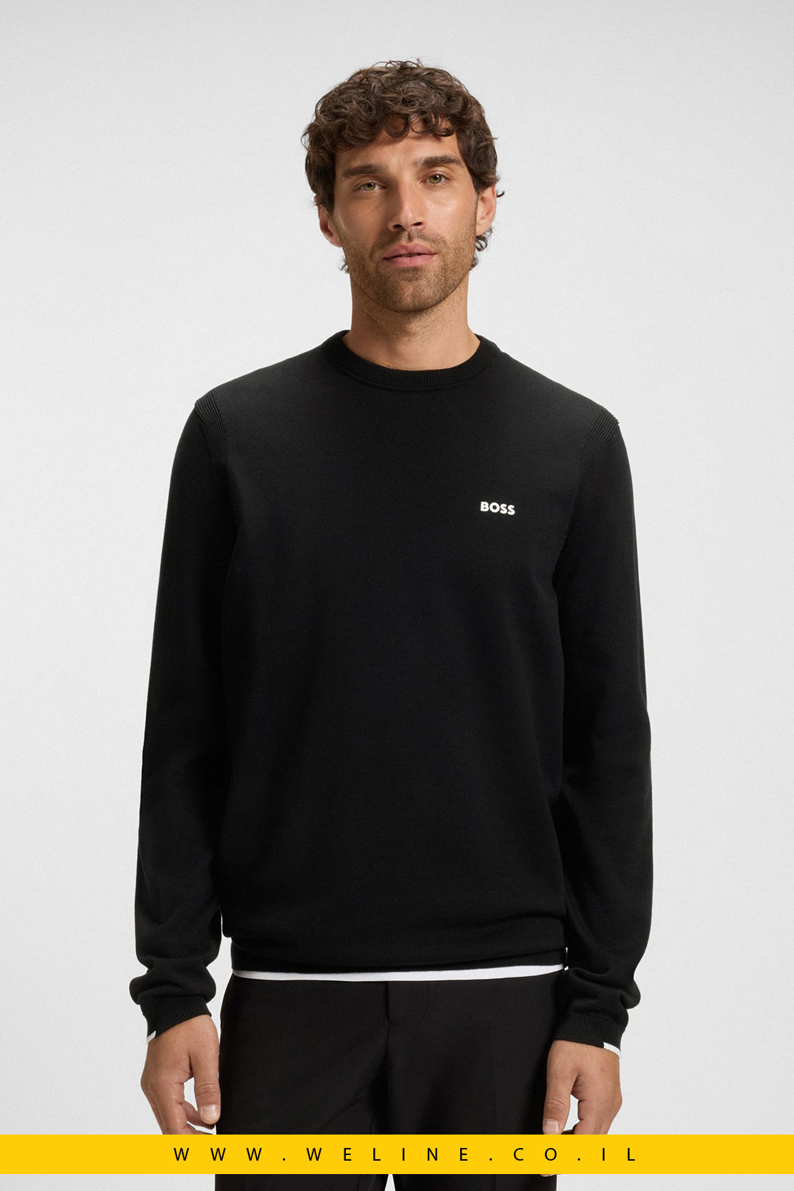 BOSS Sweater, סוודר כותנה בוס, Cotton Contrast Sweater, BOSS Israel, סוודר גברים יוקרתי, Regenerative Cotton, אופנת גברים מתקדמת